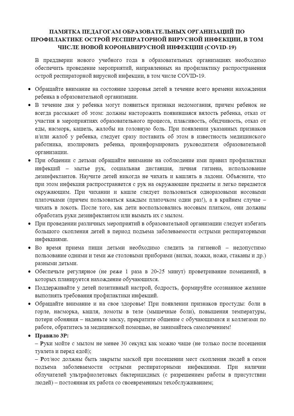 Министерство здравоохранения Российской Федерации в преддверии нового 2025/2026 учебного года направляет памятки по профилактике заболеваний и обеспечению безопасности детей и взрослых, подготовленные главными внештатными специалистами Минздрава России, по следующим разделам: «Анафилактическая реакция», «Инородное тело в дыхательных путях», «Наружное кровотечение», «Остановка дыхания и кровообращения», «Отравление», «Отравление через дыхательные пути», «Перегревание и ожоги», «Переохлаждение и отморожение», «Потеря сознания», «Судороги», «Травмы», «Укусы», «Утопление», «Непрерывный мониторинг глюкозы у пациентов с сахарным диабетом I типа», «Непрерывный мониторинг глюкозы у пациентов с сахарным диабетом I типа на экзамене», «Профилактика острой респираторной вирусной инфекции, в том числе новой коронавирусной инфекции (COVID-19)» и «Травматизм»